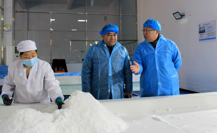 楊龍察看了金橋制鹽公司雪花鹽車間、加工鹽車間、包裝鹽車間生產(chǎn)現(xiàn)場,詳細了解企業(yè)近期的產(chǎn)品生產(chǎn)銷售情況,要求該公司要繼續(xù)抓好疫情防控、產(chǎn)品市場開拓和冬季安全生產(chǎn)工作。