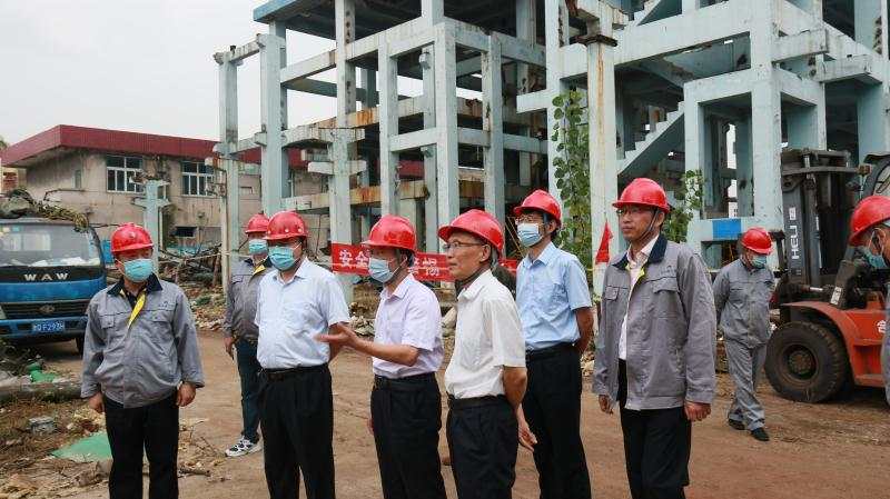 9月14日下午,集團(tuán)公司黨委書(shū)記、董事長(zhǎng)楊龍、總經(jīng)理胡建明、副總經(jīng)理張其海等一行,深入金航資產(chǎn)經(jīng)營(yíng)公司,就關(guān)?;て髽I(yè)拆除現(xiàn)場(chǎng)施工安全情況進(jìn)行檢查。