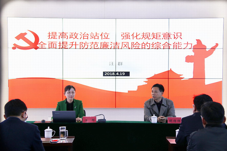 為進(jìn)一步深入學(xué)習(xí)貫徹黨的十九大會議精神,強(qiáng)化正風(fēng)肅紀(jì),不斷鞏固拓展落實中央八項規(guī)定精神成果,4月19日下午,集團(tuán)公司紀(jì)委書記汪群在資產(chǎn)管理公司上了一堂《提高政治站位,強(qiáng)化規(guī)矩意識,全面提升防范廉潔風(fēng)險的綜合能力》廉政黨課,該公司50多名干部職工聆聽了黨課。