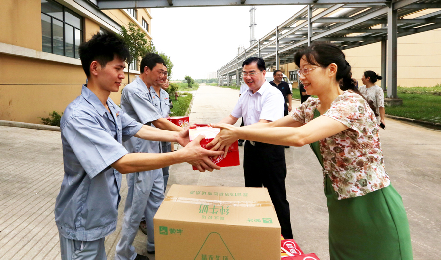 炎炎夏日送清涼,點(diǎn)滴關(guān)愛暖人心。連日來,驕陽(yáng)似火,酷暑難耐。718-20日,集團(tuán)公司領(lǐng)導(dǎo)楊龍、胡建明、張其海、朱天松、戴鴻鳴、汪群、匡友本等輕車簡(jiǎn)從,分赴基層一線,進(jìn)車間、入工地、到灘(田)頭,慰問在高溫下堅(jiān)守崗位的廣大員工,送去綠豆、白糖等防暑降溫品,在炎炎夏日中將“清涼”送到職工心坎上。