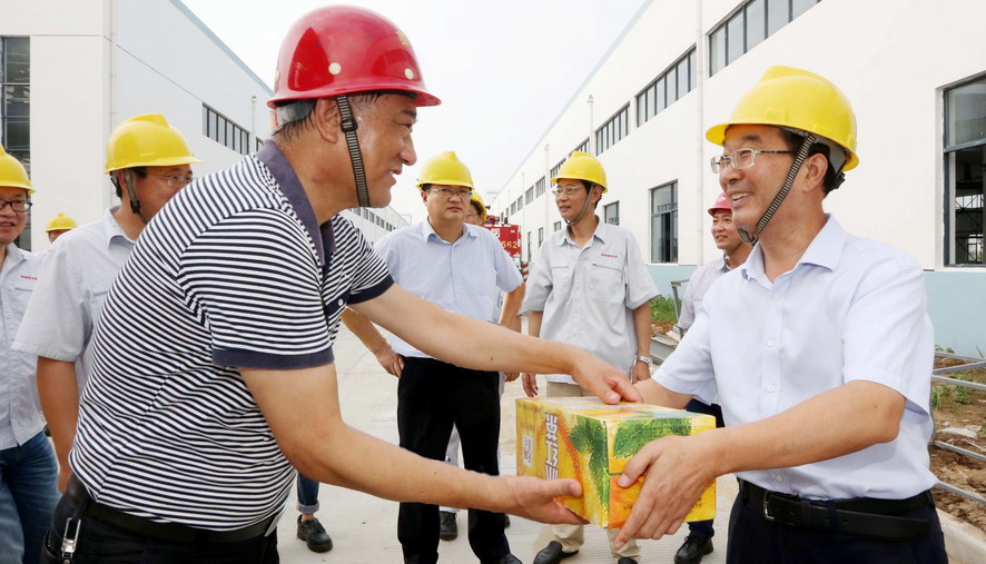 連日來(lái),驕陽(yáng)似火,酷暑難當(dāng)。728日,集團(tuán)公司楊龍、胡建明、楊國(guó)新、戴鴻鳴、匡友本、陳如軍等領(lǐng)導(dǎo)分赴基層一線,進(jìn)車間、入工地、到灘(田)頭,慰問(wèn)在高溫下堅(jiān)守崗位的一線員工,送去冰紅茶、綠豆等防暑降溫品,在炎炎夏日中將“清涼”送到職工心坎上。