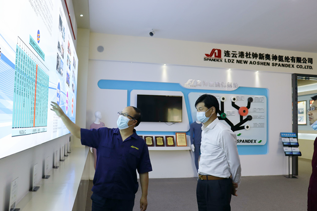 一行人參觀了公司展廳,參觀過程中,公司總經(jīng)理張斌對氨綸公司的發(fā)展歷程,差別化產(chǎn)品、戰(zhàn)略優(yōu)勢、積極開拓營銷渠道,創(chuàng)新運用新媒體傳播方式推進商品銷售等進行了詳細介紹。浪莎控股集團總裁翁榮弟對氨綸公司低溫熱粘合氨綸、抗菌氨綸、驅(qū)蚊氨綸給予了高度評價。希望雙方加強交流深化合作,攜手共創(chuàng)美好未來。