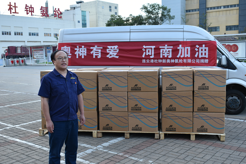 7月21日公司第一時間與鄭州市二七區(qū)紅十字會和滎陽市紅十字會取得聯(lián)系,表達了我們向災區(qū)捐贈的迫切意愿。與此同時公司積極動員多部門人員,在數(shù)小時內(nèi)準備好捐贈物資,于7月22日專車連夜送往災區(qū),第一時間將來自奧神氨綸的愛心送到災區(qū)。