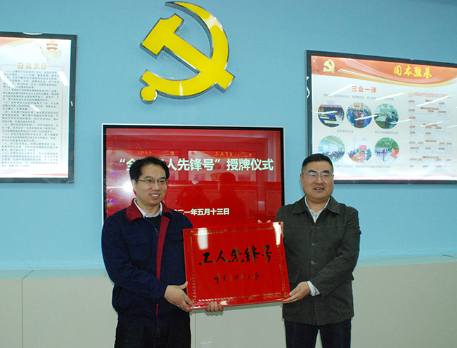 5月13日下午,氨綸公司差別化氨綸研發(fā)項(xiàng)目組榮獲“全國(guó)工人先鋒號(hào)”授牌儀式在公司黨員活動(dòng)廳隆重舉行。市總工會(huì)副主席陳建、市總工會(huì)勞動(dòng)和經(jīng)濟(jì)工作部部長(zhǎng)許小兵為我司獲得“全國(guó)工人先鋒號(hào)”的研發(fā)項(xiàng)目組團(tuán)隊(duì)授牌。氨綸公司黨委書記胡傳法、總經(jīng)理張斌等出席了授牌儀式。