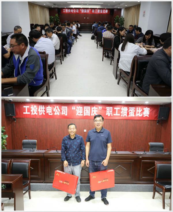 為喜迎國慶佳節(jié),豐富員工業(yè)余生活,加強職工溝通交流。公司于2018年9月30日在1216會議室舉辦“迎國慶”摜蛋比賽。本次活動得到了各單位、部門的熱烈響應,員工踴躍報名參加比賽。最終,采取分會推薦的選撥方式,共有12對選手參加比賽。 經(jīng)過4輪的激烈角逐,來自徐圩供電所的孫維兵、王志勇組合,過關斬將,榮獲冠軍。(電宣)