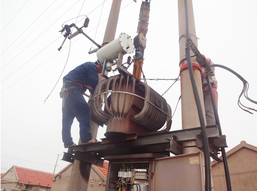 連日來,天氣持續(xù)高溫,用電負(fù)荷也隨之加大,轄區(qū)原有設(shè)計(jì)的供電線路及變壓器容量已不能滿足居民生活用電的需求,供用電矛盾日益突出。特別是4號變壓器供電區(qū)域大、容量小,已嚴(yán)重危急到供電質(zhì)量和供電安全運(yùn)行。為此,所領(lǐng)導(dǎo)決定將原有的160KVA變壓器更換為250KVA變壓器。為了避開高溫時斷,大家起早作業(yè),但還是忙的汗流浹背。他們顧不上休息,加快設(shè)備更換速度,終于在上午八點(diǎn)前完成更換任務(wù),恢復(fù)供電。(王志勇)