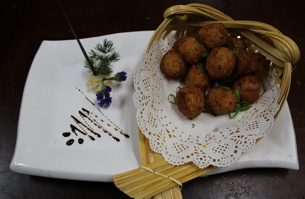 該酒店一直是以淮揚(yáng)菜結(jié)合鹽場土菜為主。為更好地吸引客人,他們博采眾家之長,充分利用當(dāng)?shù)靥厣牧?,粗料?xì)做,老料新做。通過自主研發(fā),相繼推出鹽焗大閘蟹、糯米丸、海英菜生煎包、八帶魚打邊爐、現(xiàn)烙煎餅等特色菜肴,受到客人的廣泛好評(píng)和歡迎。(淮鹽)