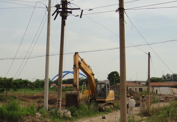 當日上午9時,室外溫度高達35攝氏度,板橋、板橋工業(yè)園等片區(qū)突發(fā)停電。人們被迫從空調(diào)房中走出來,匆匆忙忙尋找避暑的地方。臺南供電所負責人接到報告后,迅速啟動應急搶修預案,并立即安排人員分頭查找停電原因。經(jīng)過認真巡視檢查,終于發(fā)現(xiàn)了停電原因:金港灣物流園“板橋線”75#變壓器附近的59#電桿,由于挖掘機施工時操作失誤而倒地,并導致同向4根線桿倒地斷裂,造成轄區(qū)內(nèi)大面積停電。要恢復正常供電,必須重新架設電桿。于是,該所領(lǐng)導立即通知相關(guān)工作人員,組織準備相關(guān)設備、器材。10時許,副所長朱兵帶領(lǐng)搶修人員和準備齊全的設備器材,趕往現(xiàn)場進行搶修。