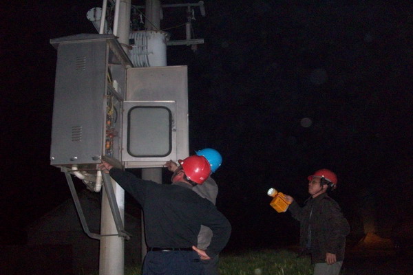 青口供電所為降低線損,采取多種措施消除線路和配變放電隱患。上圖為工人在夜間對設(shè)備進(jìn)行檢查。(宋中文)