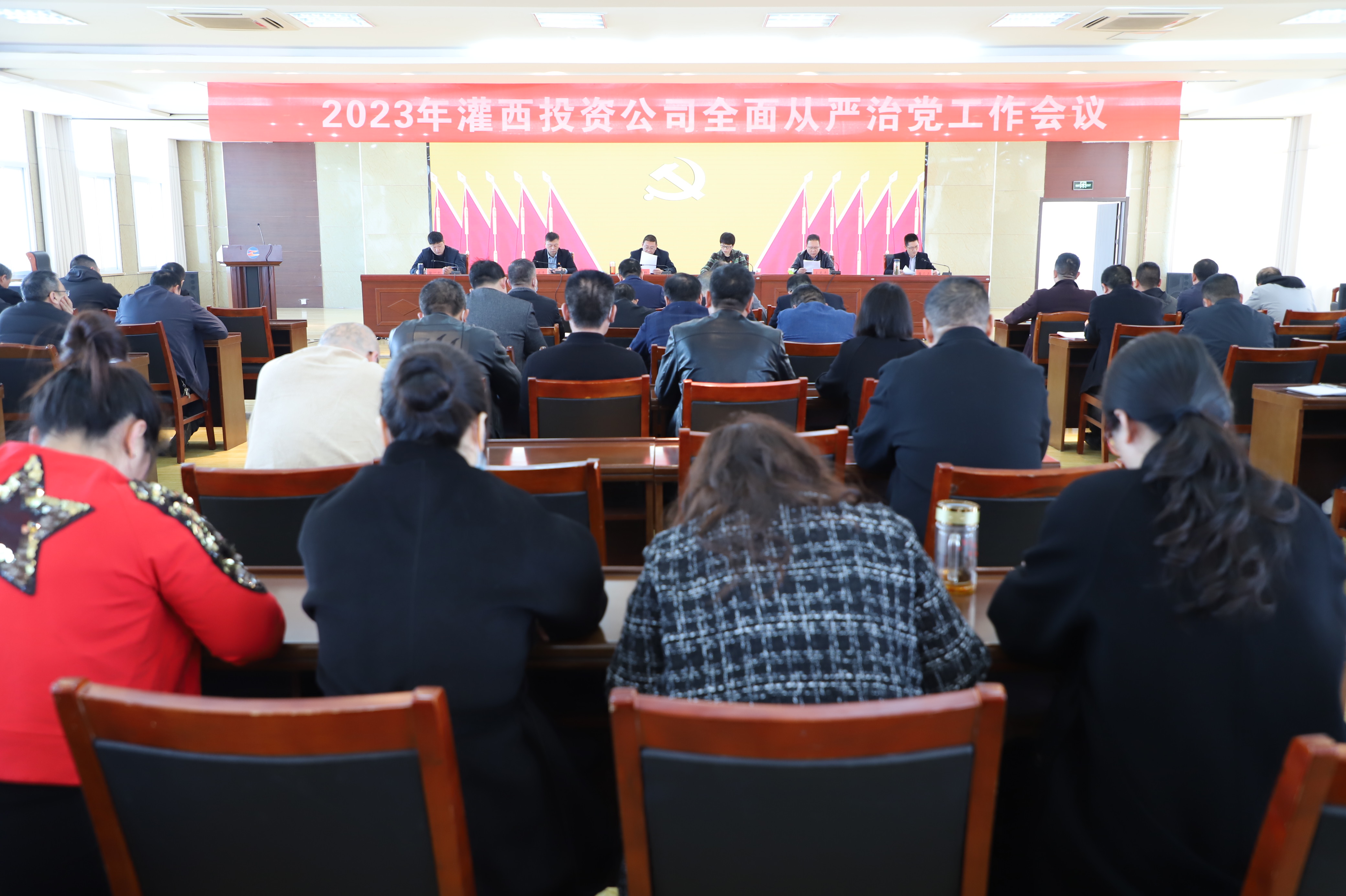 3月10日,灌西投資公司黨委在機關五樓會議室召開2023年全面從嚴治黨工作會議,回顧總結2022年全面從嚴治黨工作經驗,研究部署2023年重點任務,動員帶領各級黨組織和廣大黨員解放思想強擔當,提質增效求突破,推動全年黨建工作提升新水平,展現新作為。公司黨委書記、董事長孫政權作黨委工作報告,紀委書記王克平作紀檢工作報告。黨委副書記、工會主席王宏主持會議。