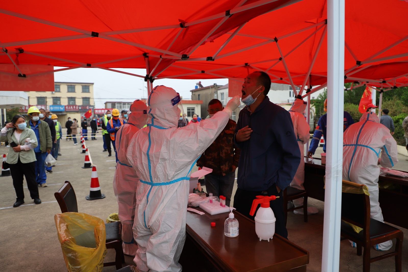 為了配合做好這一輪的全民核酸檢測(cè)工作,從核酸檢測(cè)前期的場(chǎng)地準(zhǔn)備到居民隊(duì)伍的秩序維持,從協(xié)助醫(yī)護(hù)人員做好消毒、信息錄入到現(xiàn)場(chǎng)管理,灌西投資公司廣大志愿者奮勇上前,全過(guò)程參與其中。由于之前天氣有雨,早在凌晨3點(diǎn)多鐘,公司志愿者們就來(lái)到現(xiàn)場(chǎng)部署核酸檢測(cè)場(chǎng)地,及時(shí)做好設(shè)置隔離區(qū),劃出一米線等工作,確保了早上5點(diǎn)半點(diǎn)準(zhǔn)時(shí)開始檢測(cè)。