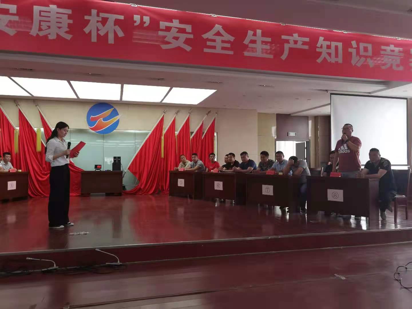 安全生產(chǎn)知識(shí)競(jìng)賽活動(dòng)是該公司開展的安全生產(chǎn)月活動(dòng)的一部份,共有新河制鹽分公司、埒南制鹽分公司、宵洋物流公司、西旺水產(chǎn)公司、南翼綠化公司、生產(chǎn)服務(wù)公司、資源管理中心、明威農(nóng)業(yè)公司等有八支代表隊(duì)參加比賽,比賽內(nèi)容主要為安全生產(chǎn)基本常識(shí)、新《安全生產(chǎn)法》等。此次安全競(jìng)賽分為必答題、搶答題和觀眾題等多種形式,整個(gè)搶答比賽過(guò)程緊張激烈,選手搶答積極,流暢作答,比分依次上升,搶答環(huán)節(jié)險(xiǎn)情頻頻,有的代表隊(duì)搶答違規(guī)被扣分,好容易搶到的分?jǐn)?shù)又被扣了,有的代表隊(duì)稍顯謹(jǐn)慎,很少搶到答題,但穩(wěn)打穩(wěn)扎,得分依然不低。觀眾答題環(huán)節(jié),人人舉手踴躍答題,現(xiàn)場(chǎng)氣氛熱烈。