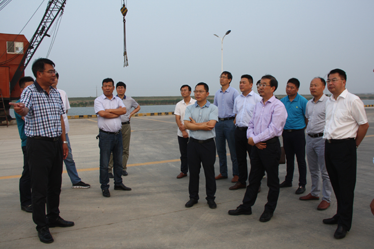 在宵洋物流公司的五灌河碼頭處,集團公司總經理胡建明對五灌河碼頭的建設和運營情況對考察團進行了介紹,他指出,五灌河碼頭是公司利用擁有的內河岸線資源開發(fā)起來,主要進行原鹽駁運和建材、化工噸袋等物資的裝卸,碼頭吞吐量年年增長,目前年吞吐量已達到100萬余噸,二期碼頭擴建項目即將進行,集團公司除了五灌河碼頭,還有一處燒香河內河碼頭,也許暫時看不到顯著效益,但隨著江蘇沿海經濟開發(fā)的不斷推進,碼頭的資源優(yōu)勢愈加凸顯,將來一定會成為稀缺資源。