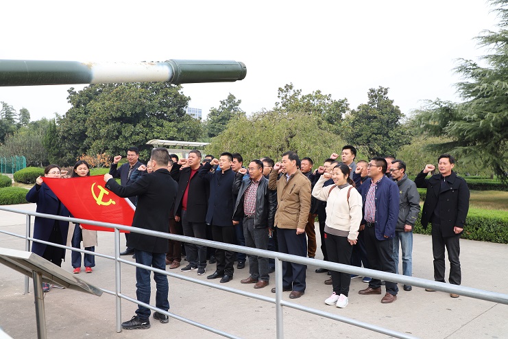 在紀(jì)念館前,大家面對鮮紅的黨旗,重溫入黨誓詞,共同表達(dá)對革命烈士最崇高的敬意。