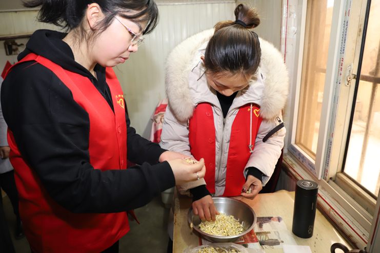 九點(diǎn)半,志愿者們來到中二圩社區(qū)新建點(diǎn)邱長松家,邱老跟老伴正在揀黃豆芽,準(zhǔn)備中午的飯菜??吹街驹刚邆兊牡絹?,兩位老人熱情地迎出門來,招呼我們進(jìn)屋,我們來到房間里,映入眼簾的是一張老式的八仙桌擺在室內(nèi)的一角,整個(gè)房間里擺設(shè)很簡單,可以看出來老人的艱苦樸素、勤儉節(jié)約的生活作風(fēng)。志愿者和老兩口拉起家常,詢問身體狀況和生活困難,并幫著大爺大媽揀黃豆芽。“我身體沒有什么大毛病,就是年歲大了,行動(dòng)不方便,小孩都不在身邊,要感謝志愿者來看我們老兩口”,邱大爺誠懇的話語表達(dá)著心里的感謝。醫(yī)療志愿者為邱大爺跟老伴做了身體的簡單檢查,這時(shí)從外面走來幾位剛買完菜路過的大嬸、大媽們,她們聽說有醫(yī)療志愿者在邱大爺家,也紛紛過來讓志愿者醫(yī)療隊(duì)的醫(yī)生查查身體,“我家就住在隔壁,聽說有志愿者醫(yī)療隊(duì)來,我就想過來讓醫(yī)生幫我量量血壓,最近血壓或高或低的”,“剛在街上買菜回來,路過這,看都穿灌西志愿者紅馬甲,我就進(jìn)來看看的,正好醫(yī)療隊(duì)在,我也給醫(yī)生查查看看。”大嬸、大媽們熱情的表達(dá)。