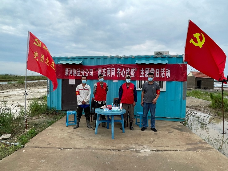 新河制鹽分公司根據(jù)投資公司黨委安排,在零班二期設(shè)立卡點(diǎn),嚴(yán)格落實(shí)領(lǐng)導(dǎo)干部24小時(shí)帶班、值班和疫情突發(fā)狀況報(bào)告等制度,支部亮旗、黨員亮徽、職工亮力,共同織就公司疫情防控網(wǎng)。一個(gè)支部就是一座堡壘,一名黨員就是一面旗幟,全公司黨員紛紛亮出身份,主動請纓,沖鋒在前,放棄假期積極投身最需要的地方,用行動踐行初心使命,全力打好這場疫情防控阻擊戰(zhàn)?。ㄐ潞狱h支部)