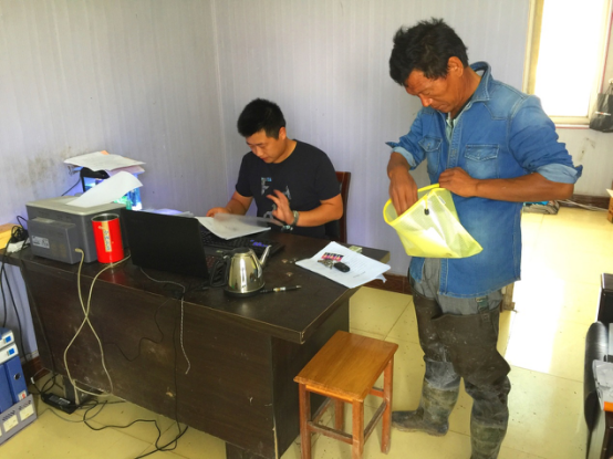 (圖為埒南制鹽管理人員為胡繼華進(jìn)行資料采集)