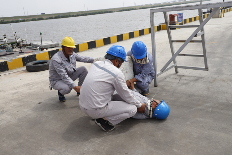 為抓好安全管理各項(xiàng)工作,全面落實(shí)以“消除事故隱患,筑牢安全基礎(chǔ)”為主題的全國(guó)“安全生產(chǎn)月”活動(dòng)。6月22日,宵洋物流公司在碼頭舉行砸人事故和中暑事故應(yīng)急救援演練活動(dòng)。投資公司領(lǐng)導(dǎo)和灌云縣交通局相關(guān)人員參加觀摩。