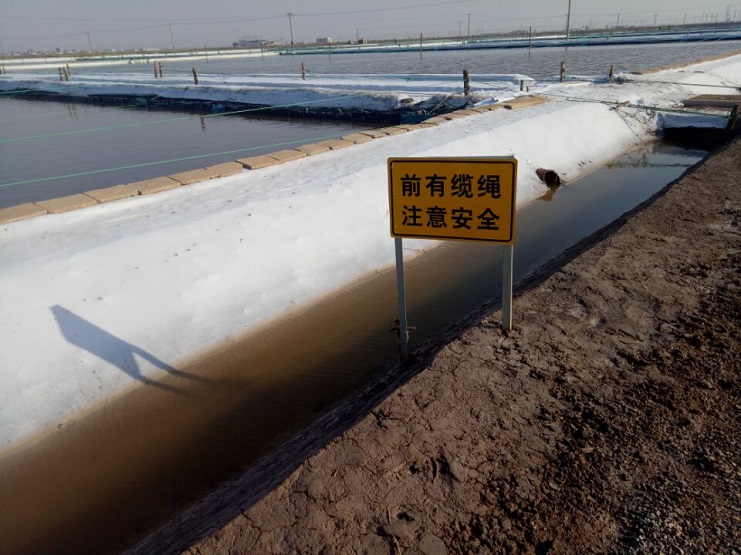 實業(yè)公司制鹽分公司灘場由于改造道路復(fù)雜,存在各種不安全因素,為了保障行人安全,實業(yè)公司制鹽分公司柴門區(qū)域,在各個班組重要路口設(shè)置安全警示標(biāo)牌,用以提醒行人安全通行,確保安全無事故。(于同剛)
