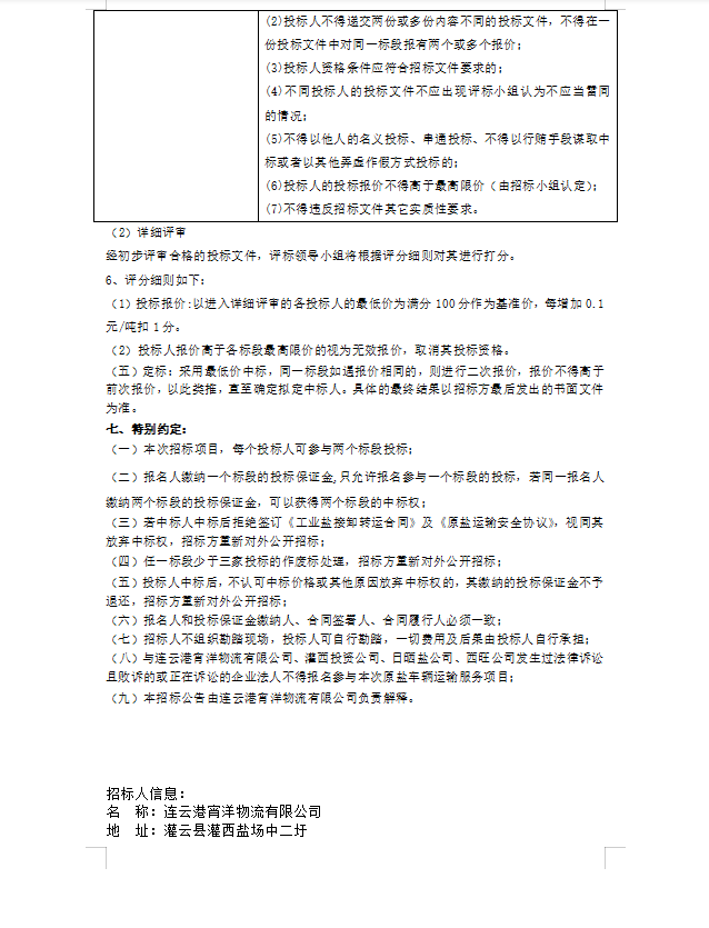 連云港宵洋物流有限公司原鹽異地轉(zhuǎn)運項目招標公告