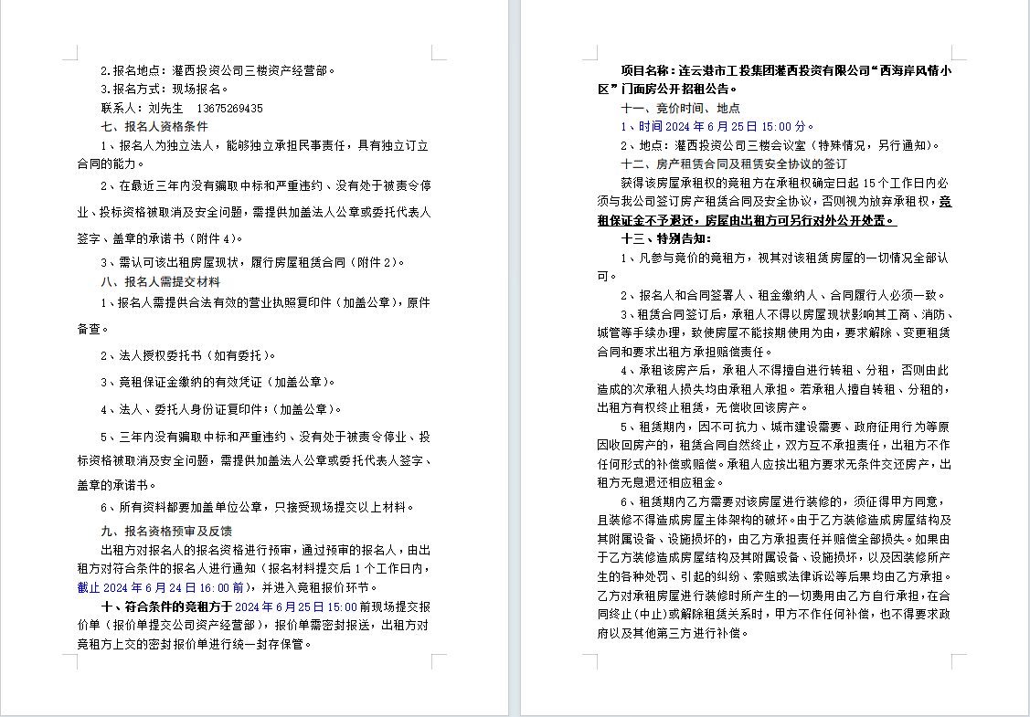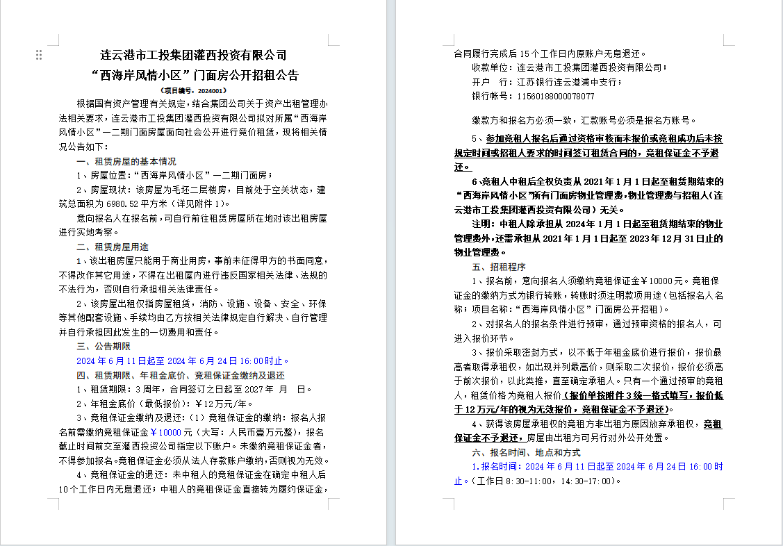 連云港市工投集團(tuán)灌西投資有限公司“西海岸風(fēng)情小區(qū)”門面房公開(kāi)招租公告