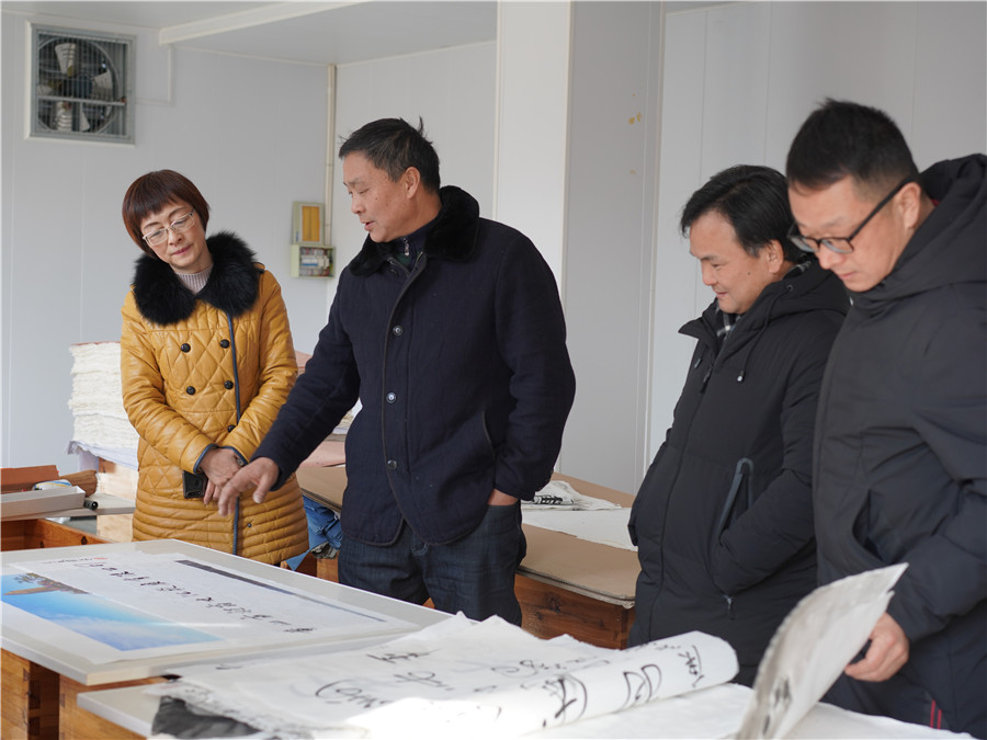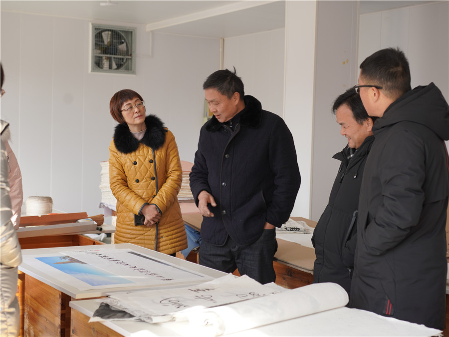1月11日由市文旅局副局長王迎春帶隊的,黃山市非物質(zhì)文化遺產(chǎn)傳習(xí)基地驗收組到我司黃山市凝霜文化發(fā)展有限公司進行調(diào)研工作。
