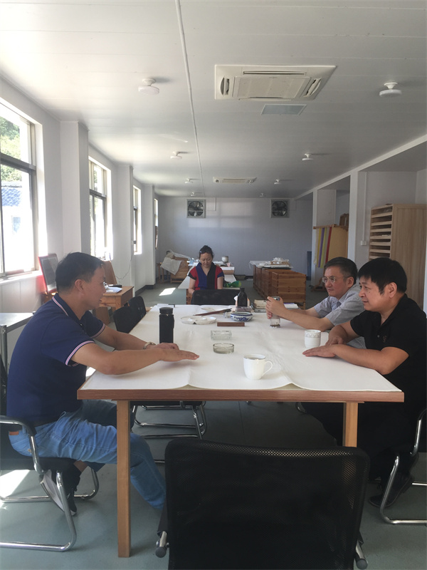 中科大湯書昆院長、徽硯大師朱岱老師以及竹紙工藝大師來我公司參觀學習,探討紙制作技藝、進行紙文化交流。