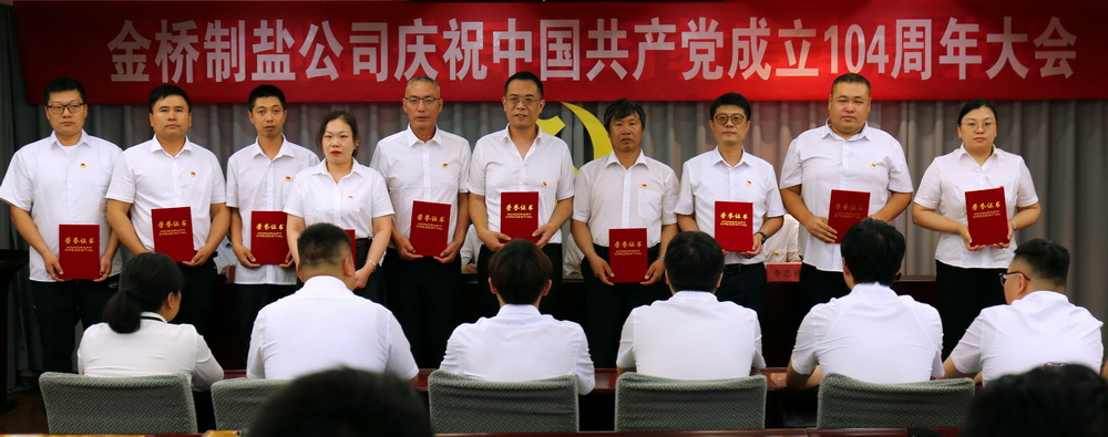 7月1日上午,金橋制鹽公司在三樓會(huì)議室召開(kāi)慶祝中國(guó)共產(chǎn)黨成立104周年大會(huì)。公司領(lǐng)導(dǎo)班子成員,公司中層副職以上人員、受表彰人員和新黨員參加了會(huì)議,大會(huì)由公司黨委副書(shū)記、紀(jì)委書(shū)記、工會(huì)主席張銘楊主持。