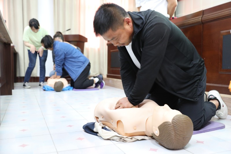 培訓會上,掌曉慧主任強調(diào)了學習心肺復蘇術(shù)的重要性,具體講解了胸外心臟按壓、人工呼吸、AED除顫儀的使用及救助過程中需要注意的問題和經(jīng)常出現(xiàn)的錯誤。以模擬橡膠人為器具,現(xiàn)場演示并指導職工關(guān)于心肺按壓、人工呼吸和AED除顫儀的正確使用。