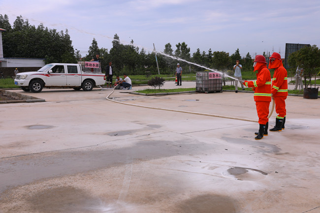 生命無演練,防患于未然?;顒?dòng)開始,安全生產(chǎn)部工作人員一一講述了火災(zāi)種類、滅火器種類及使用方法,大家輪番上前,親手實(shí)踐了滅火器的使用方法。隨后,應(yīng)急分隊(duì)按照預(yù)案實(shí)地演練汽油機(jī)水泵滅火流程。