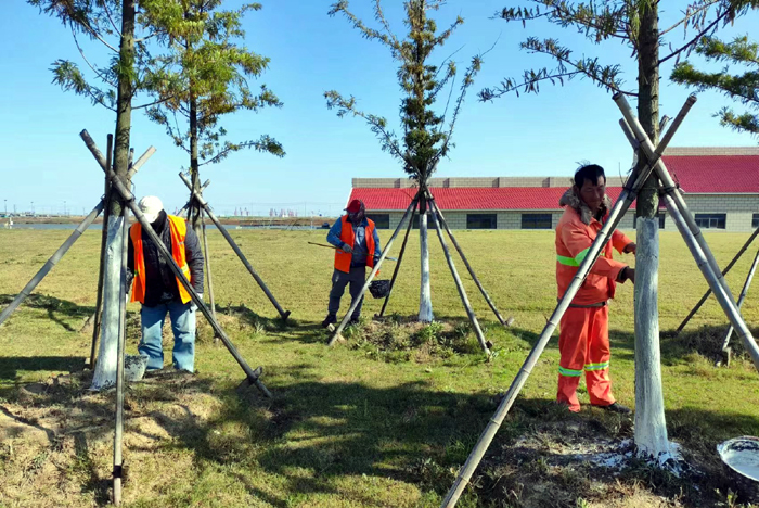 連日來,綠化分公司為為扎實做好冬季樹木養(yǎng)護工作,提高樹木的過冬、抗病和抗蟲能力,開展樹木涂白行動,為樹木披上“防寒衣”。